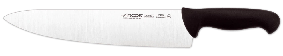 The Arcos 2900 chef knife is versatile tool ideal for intensive use in professional kitchens. It is perfect for working with the great majority of food ingredients: vegetables, boneless, meats, fruits, etc. Thanks to its long blade (30 cm), this knife is ideal for dealing with bigger pieces of food.