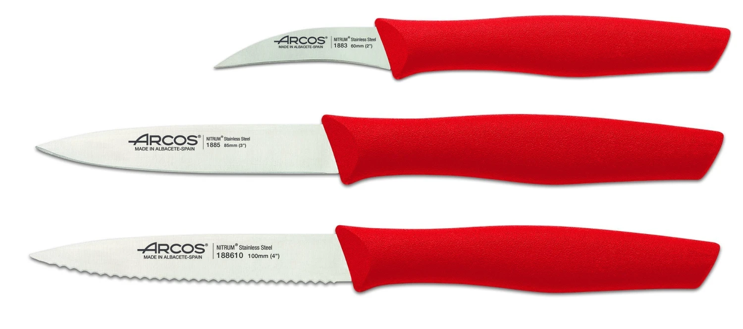 You can bring the great quality of Arcos to your kitchen by getting the Arcos Nova 3-piece knife set that we offer you in this page. This knife set is a must-have in every kitchen, because it comes with 3 paring knives that are perfect for cutting and peeling your favourite fruits and vegetables with great ease and precision.