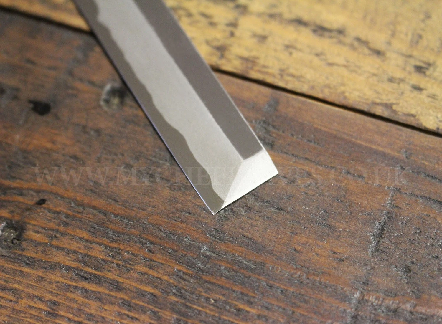 The blade’s surface has also been engraved by the artisan to display brand’s logo in Japanese. The engraving is directly made by hand using a punch and a small hammer, and because it is truly engraved in the steel and not just stamped, the logo will never fade away. These are the kind of details that separate this knife from all the other Japanese knives made by other mass-production brands!