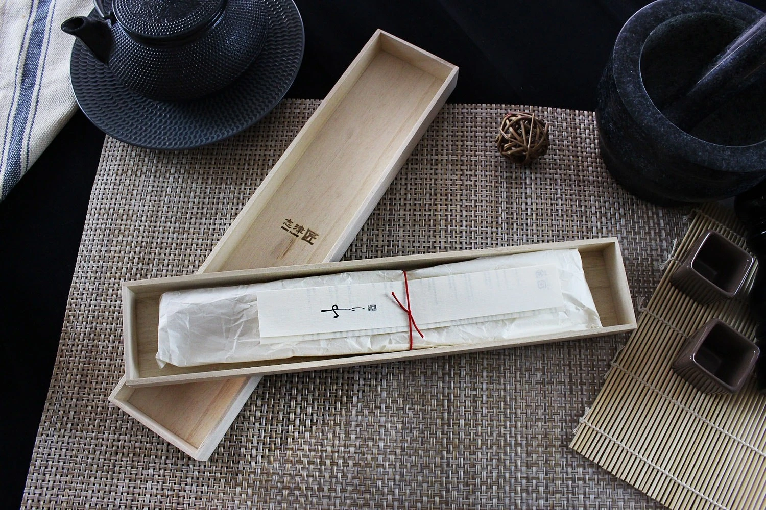 Last but not least, this deba knife comes in a beautiful, wooden box. The logo of the brand has been engraved on the top of the box to give it more cachet. With a box like this one, this knife is surely a great option to offer as a present to anyone who is passionate about cooking.