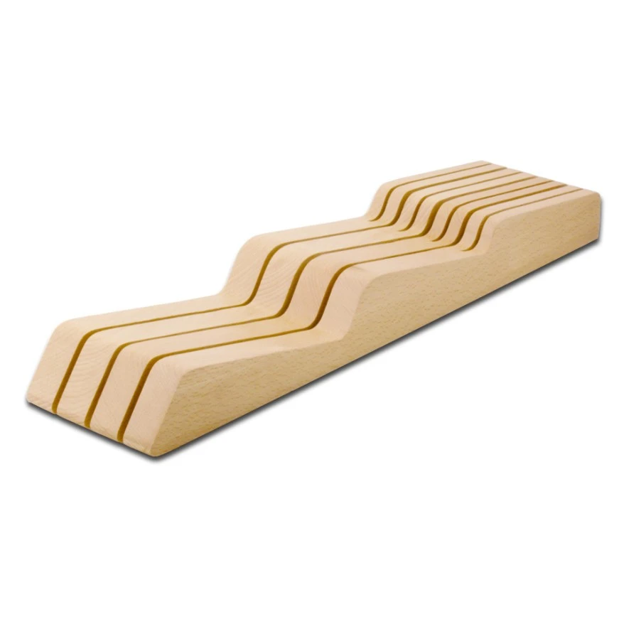 It includes an in-drawer knife storage tray made of beech wood